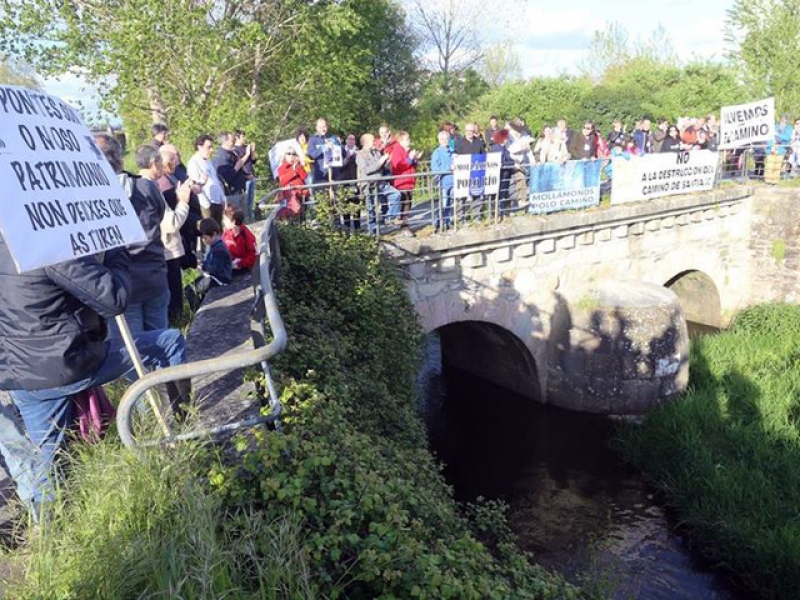 Los integrantes de la Asociación Galega de Amigos do Camiño de Santiago (AGACS) eligieron como manera de protestar por las obras del plan de encauzamiento Mollámonos polo Camiñoque consideran que afectan a partes importantes del Camiño Francés lo que mejor saben hacer, caminar. Por ello convocaron la protesta que celebraron ayer por la tarde y que consistió en recorrer andando prácticamente todo el tramo que comprenden las obras con especial detenimiento en los monumentos que se encuentran en la ruta jacobea.